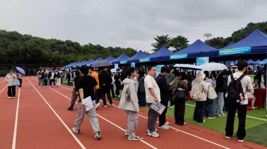 2025年11月13日,正值第十五届全国运动会期间,广东药科大学举办“毕业生专场供需见面会”,同学们不畏艰辛,冒着风雨,在奔往各自心仪岗位的路上披荆斩棘。